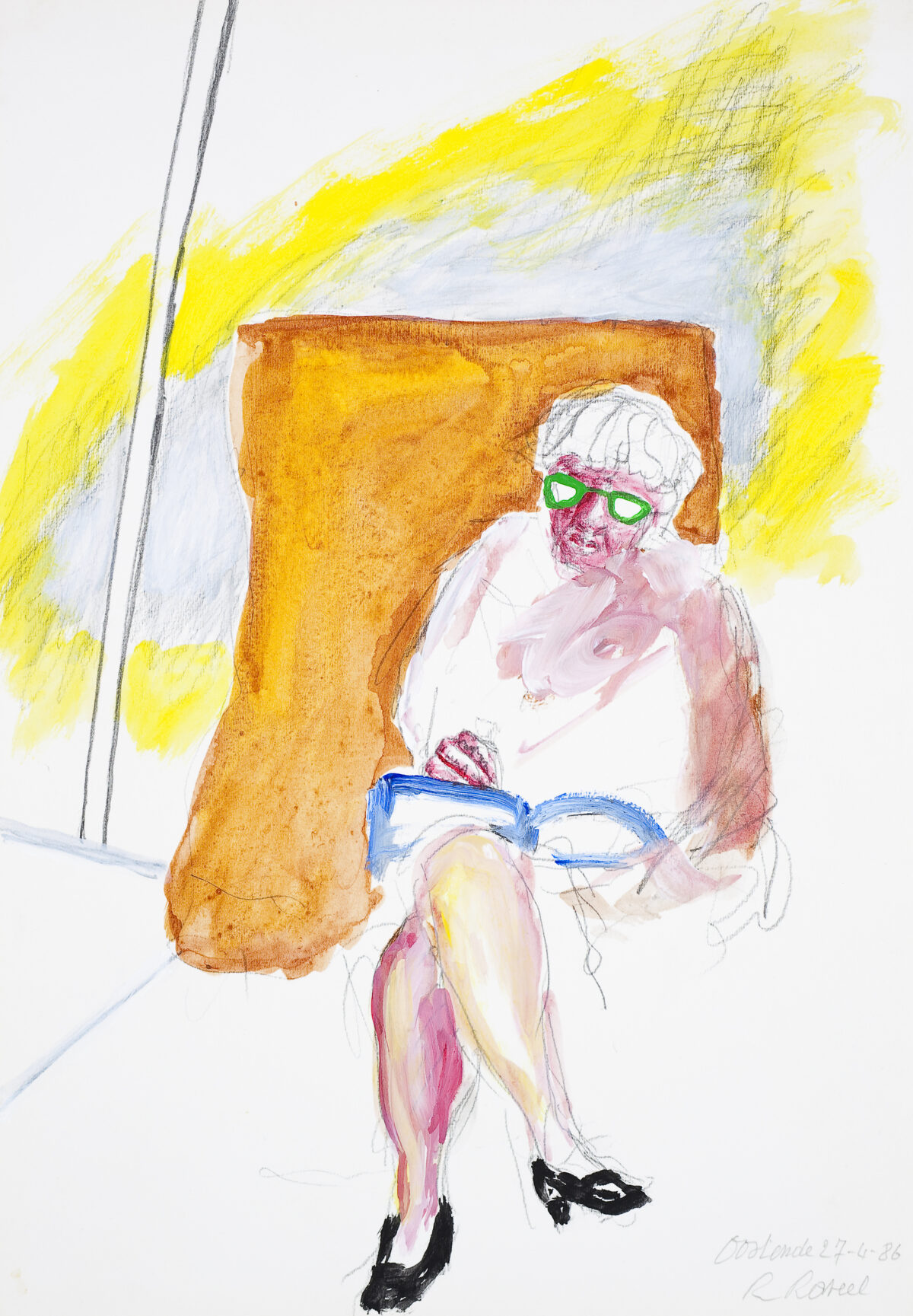 Tijdens de vele verblijven in hun Oostendse appartement maakt Raveel talloze tekeningen. Uitzichten op de zee en de dijk maar vooral ook het gemoedelijke leven met Zulma in haar alledaagse bezigheden: zittend, lezend, kruiswoordraadsels oplossend.