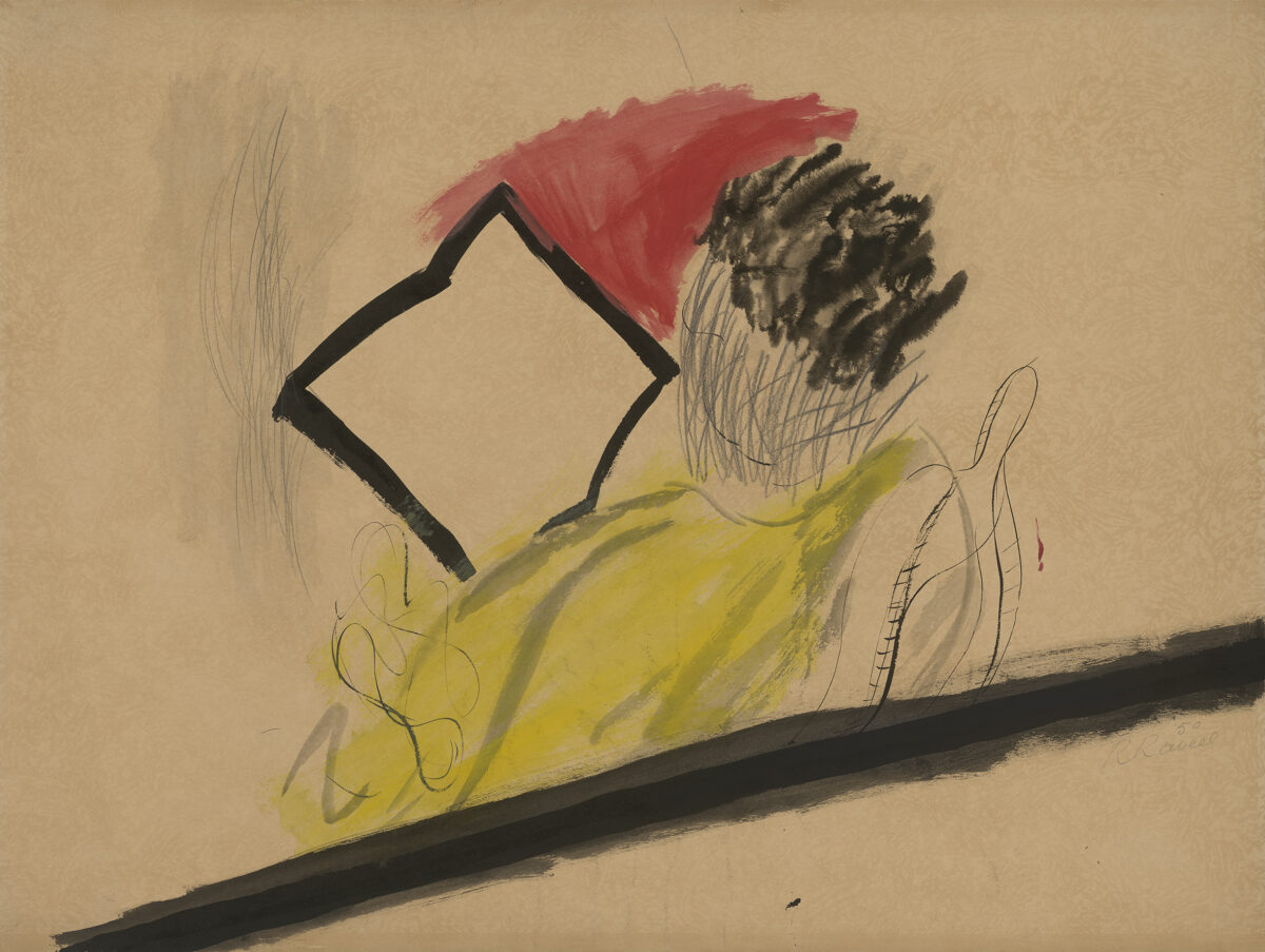 inkt, potlood en dekverf op papier, gemaroufleerd op karton, 57 x 75 cm