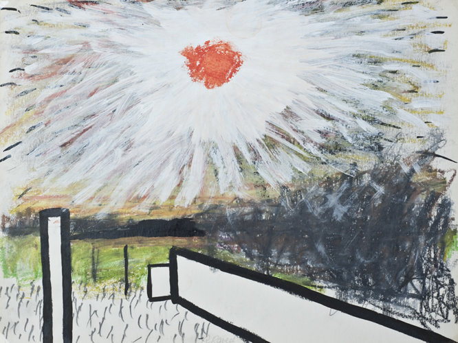 crayon, craie grasse, encre et peinture acrylique sur papier, 27 x 35,9 cm