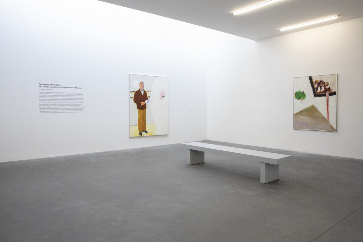 In de tentoonstelling De leegte om mij heen staan een aantal merkwaardige, vaak onderbelichte motieven uit het oeuvre van Roger Raveel centraal. Een daarvan betreft de grenzen en de schaal van het schilderij, en de manier waarop het beeld zich verhoudt tot de ruimte waarin het wordt getoond. Niet zelden speelt Raveel met die specifieke dimensies: hij opent of doorbreekt het beeld met ramen, doorzichten, grote kleurzones en witte vierkanten. Het schilderij dijt uit in de omgeving. Hoe we die ruimtelijkheid moeten begrijpen, laat Raveel over aan de kijker. Is het een soort leegte? Of een ‘afwezig zijn’ van materie, een portaal tussen de kijker en de schilder? Een wandeling langs zelden getoonde werken laat de bezoeker hierop reflecteren.
