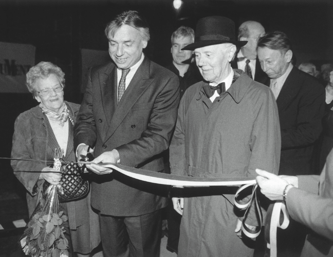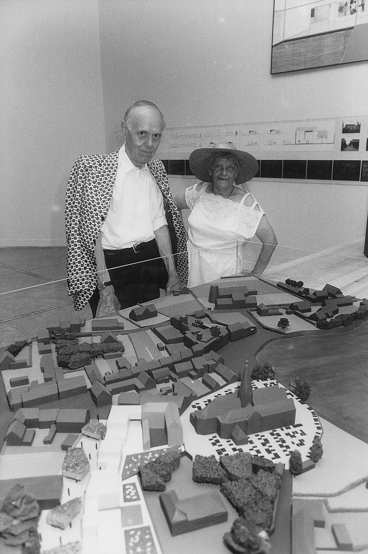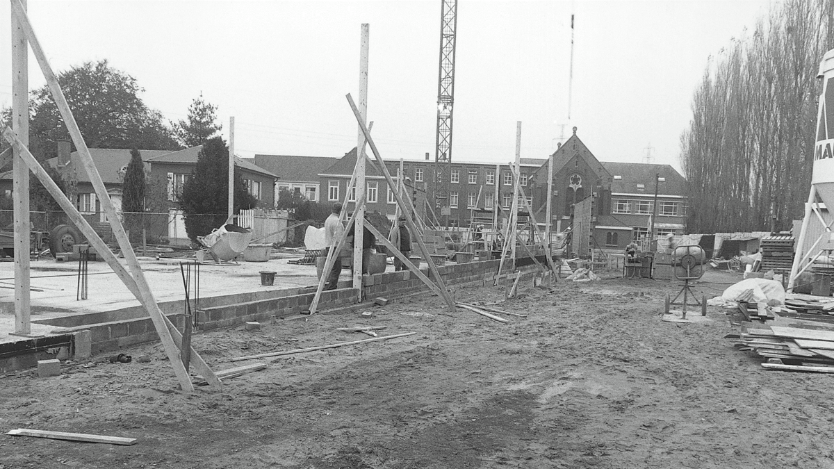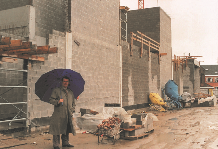 Muren en ramen zijn een belangrijk motief in het werk van Raveel. Die komen ook hier terug: in de muur zie je enkele kleine kijkraampjes die de wand van het gebouw op een speelse manier doorbreken.
