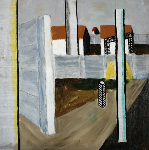 Op dit zoldertje schildert hij meesterwerken als Huiselijkheid (1948), Gele man met karretje (1952) en Man met ijzerdraad in tuin (1953). Ook Voetbalveld (1952) is hier ontstaan: een groot schilderij met krachtige kleuren opgebouwd uit vele verticale elementen. Het voetbalveld waar hij op uitkeek vanuit het zolderkamertje diende als inspiratie. We passeren er straks nog.