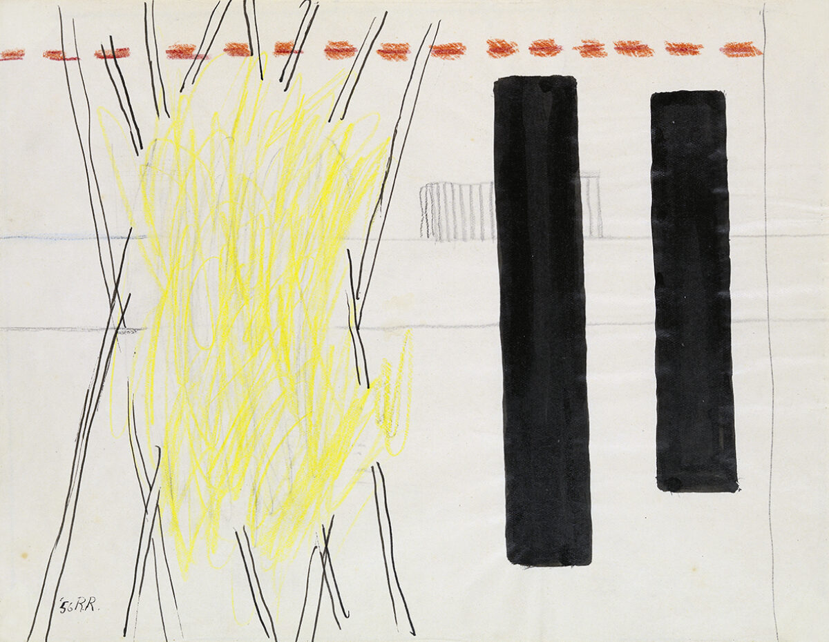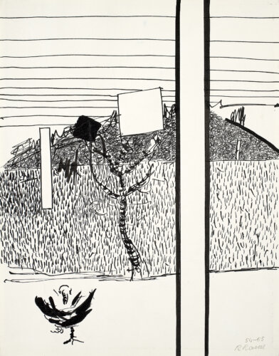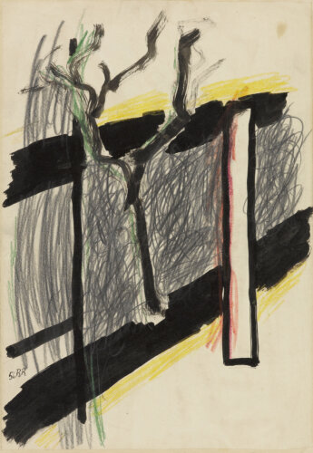 The post appears as a motif in almost all of Raveel's paintings and drawings. As a typical vertical element, it helps to determine the composition of the image.