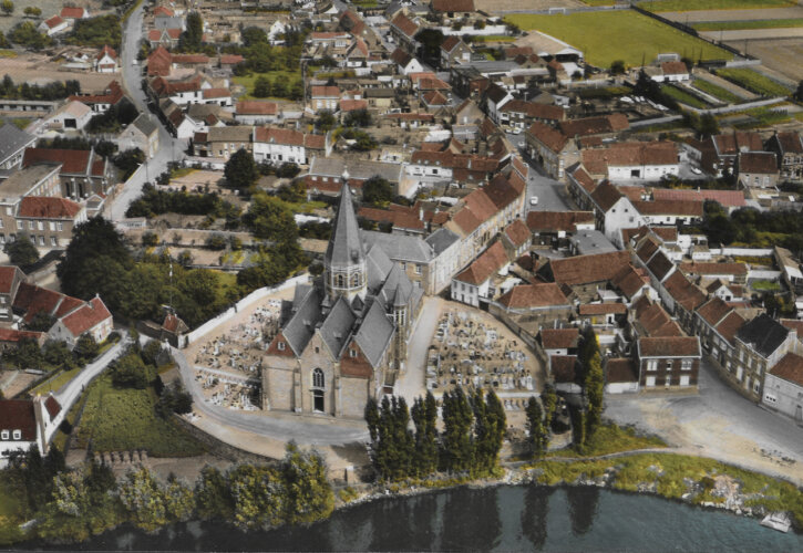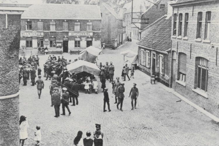Vous vous trouvez à présent sur la place du village de Machelen-sur-Lys, l’un des plus anciens villages de Flandre. À partir d’ici, des ruelles mènent à l’église, à la Lys, au moulin à vent et, autrefois, aux grandes fermes aux alentours. Sur la place, vous apercevez l’ancienne auberge De Afspanning, aujourd’hui un restaurant.